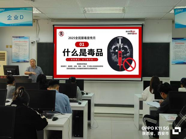 王煜岿老师、郭重蒲老师、万延涛老师针对大二及以上高年级学生特点,在主题班会中通过展示毒品类型、危害案例,播放禁毒教育短片,直观呈现毒品对个人健康、家庭幸福及社会稳定的严重破坏,随后结合专业视角分析毒品对职场环境、企业管理的负面影响,进一步深化认知,明确拒毒防毒责任。通过教育有效地提升了学生对毒品的辨识能力与防范意识,引导学生以健康姿态投入学习与未来职业生涯发展。