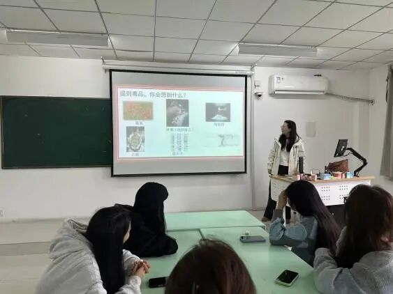 针对大学生日常高频接触的聚会派对、网络购物等场景,班会重点聚焦新型毒品的“伪装术”——通过图片展示、实物对比,直观呈现伪装成“奶茶粉”“电子烟油”“潮流零食”的新型毒品,揭露其“日常化包装、隐蔽性传播”的特点。此外,两位老师还