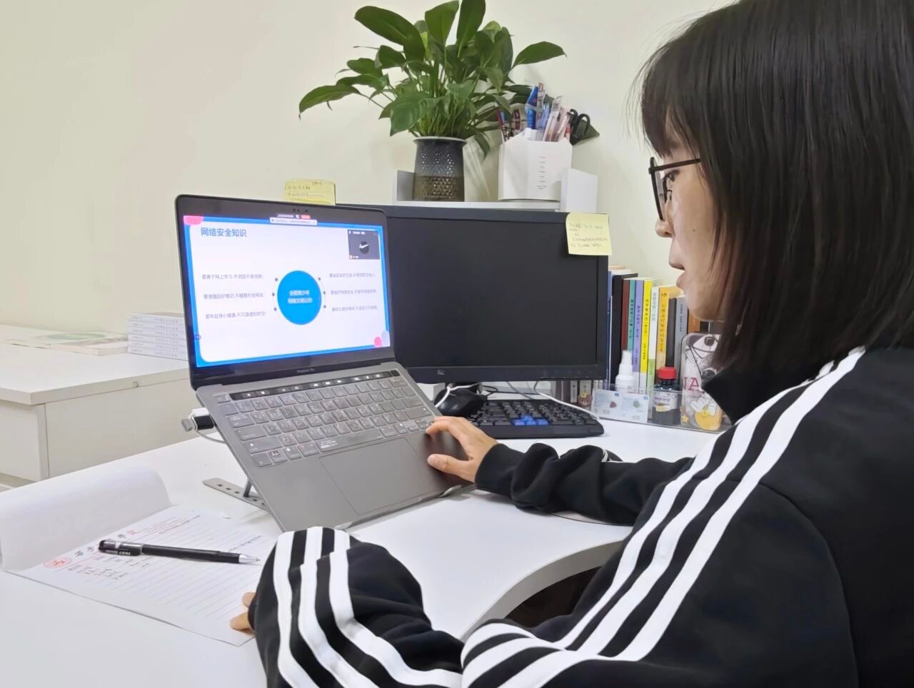 班会中,李静琦老师结合网络安全周重点宣传方向,从多维度展开讲解。通过梳理近期高发的“游戏账号诈骗”“虚假购物陷阱”“个人信息泄露”等案例,用图文、短视频等形式直观呈现网络风险的多样性;同时重点解读《中华人民共和国网络安全法》中与学生生活密切相关的条款,让学生明白网络并非“法外之地”,需时刻遵守法律法规,规范网络行为。
