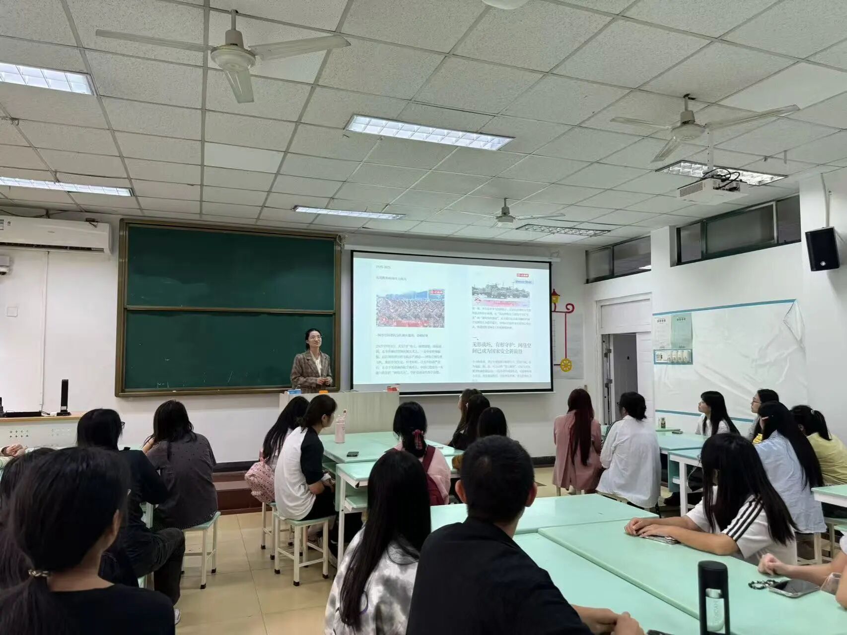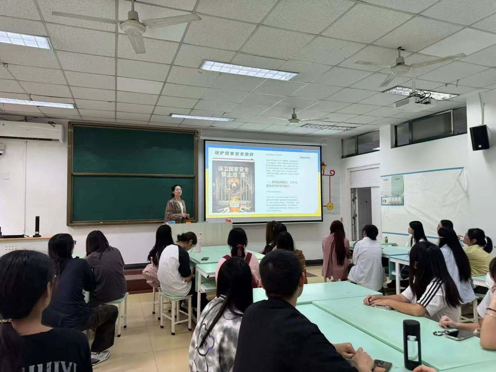 在政策法规讲解环节,李老师梳理了我国网络安全法律体系,并结合“帮信罪”案例,警示同学们规范网络行为,自觉遵守法律法规。针对日常网络安全防护,班会聚焦“数据安全”“电信网络诈骗防范”“个人信息保护”三大重点,给出了如谨慎授权APP权限、警惕AI换脸诈骗等具体实用的建议。她精准聚焦学生网络安全薄弱环节,通过政策解读、案例分析等方式,让同学们全面掌握了网络安全知识与防护技能。