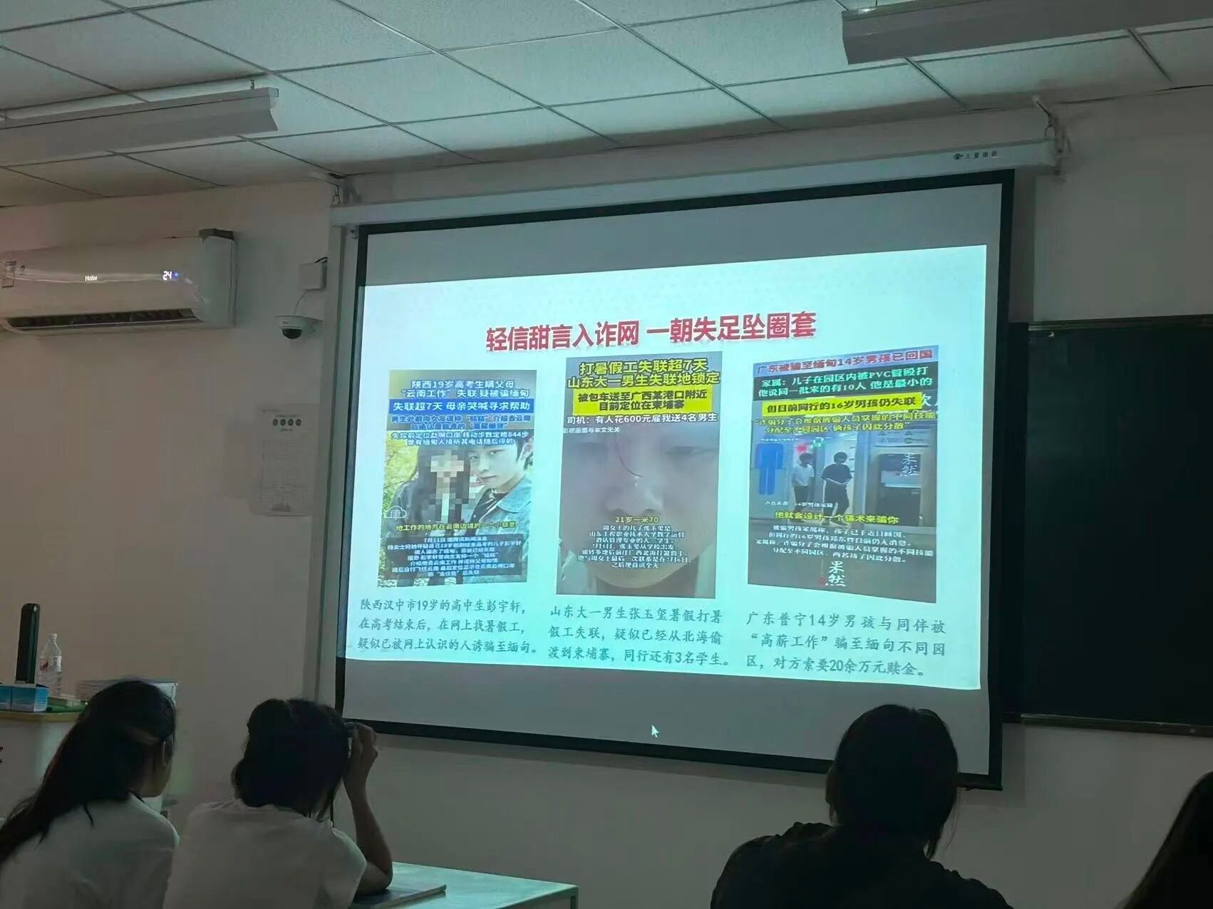 同时,安老师结合现实案例,列举多起学生因轻信“高薪工作”被骗至境外的事例,敲响就业防骗警钟。此外,班会强调网络言论边界,通过具体案例提醒同学们散布谣言需承担民事、行政乃至刑事责任,要求学生不信谣、不传谣,文明上网。