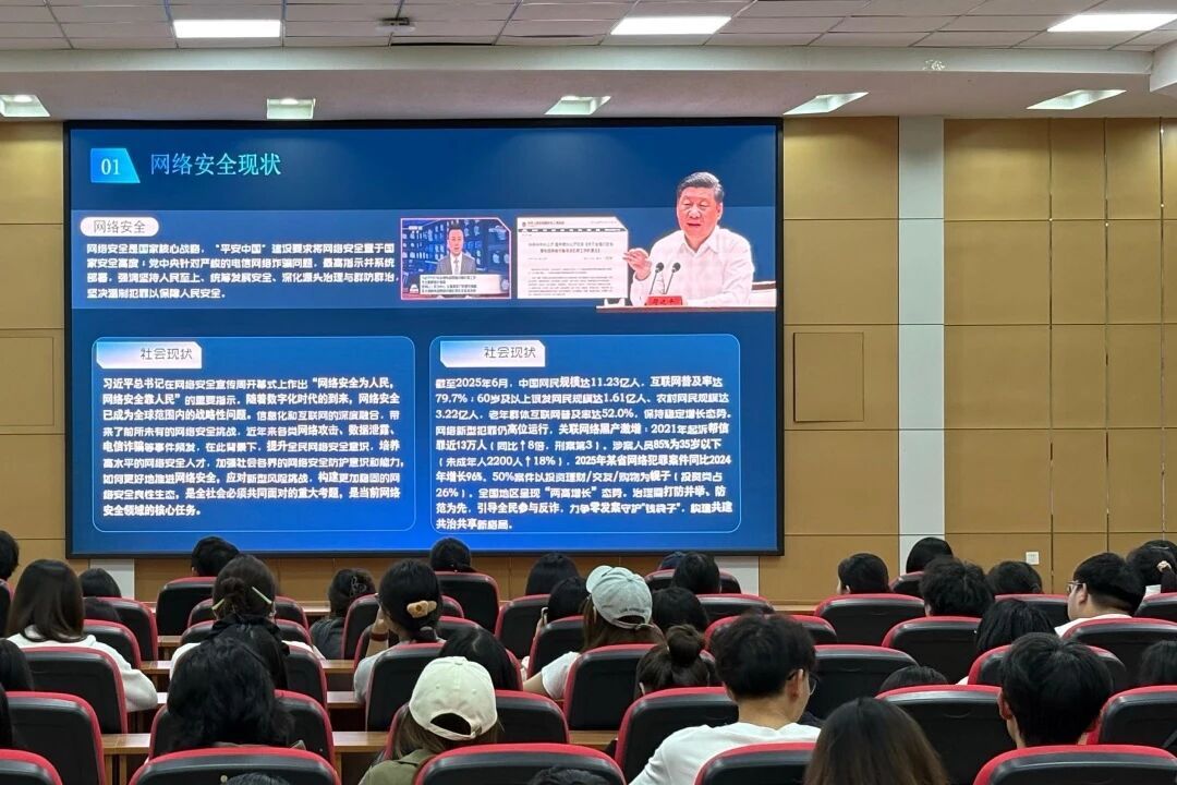 为积极响应2025年国家网络安全宣传周“网络安全为人民,网络安全靠人民——以高水平安全守护高质量发展”的核心主题,全面提升大学生网络素养与安全防护能力,商学院5号楼学工组全体辅导员主动作为,紧扣校园实际与学生需求,在各班级开展了一系列形式生动、内容扎实的网络安全主题班会,将国家级网络安全宣传热潮深度融入校园日常教育,切实为学子筑牢网络空间“安全屏障”。