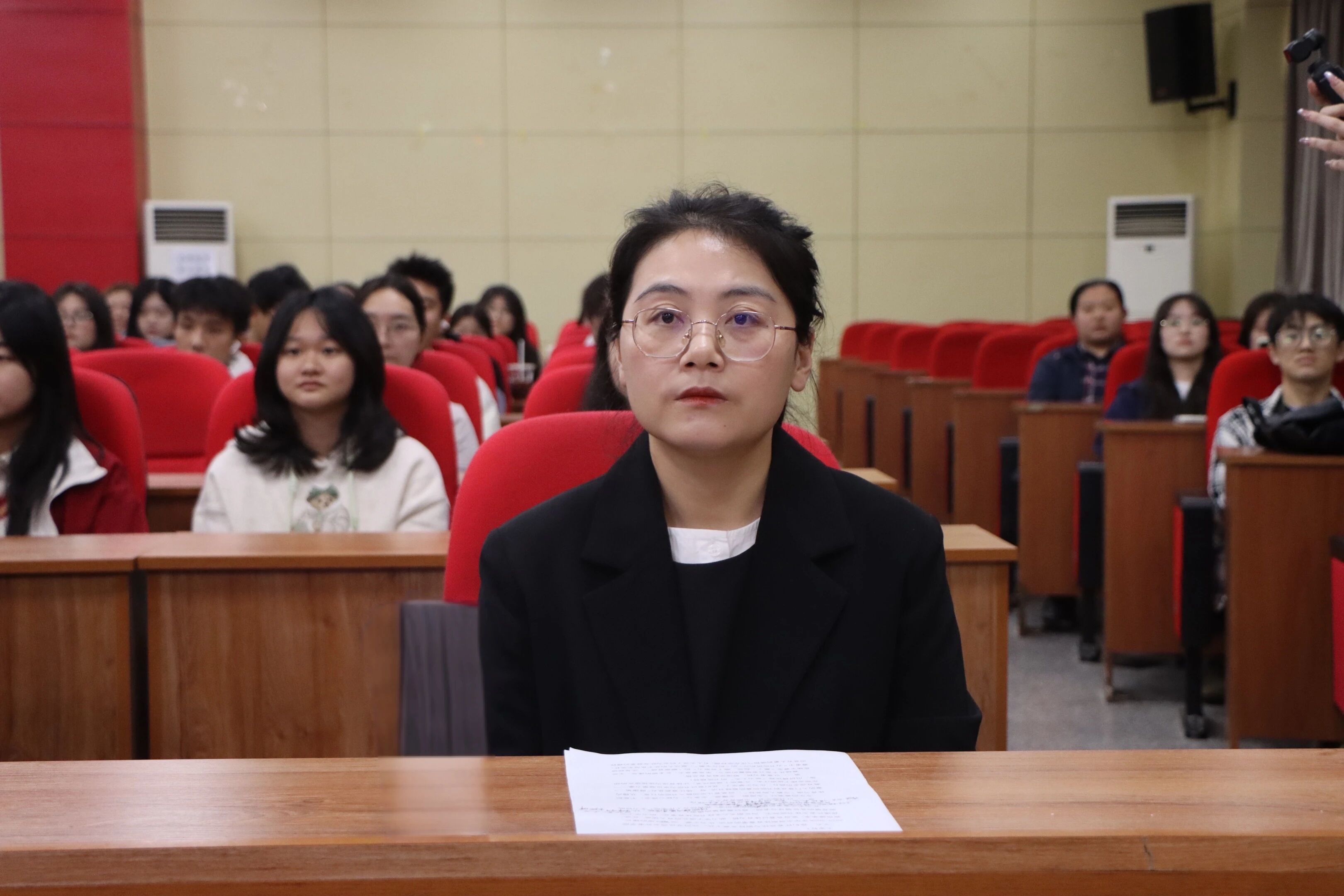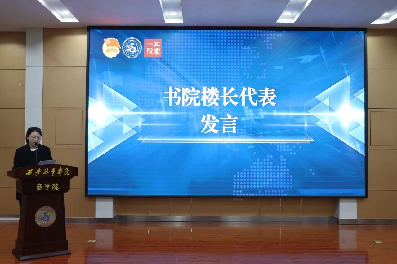 接下来由正蒙一院书院楼长代表李静静老师发言,李老师从楼内赛的入门普及到楼间赛的巅峰对决中,倡导同学们在宿舍楼下挥洒汗水,在赛场上展现风采,让体育成为连接彼此的纽带,用拼搏诠释"敢为人先"的书院精神!